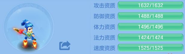龙宫子女不用刻意去堆攻击资质,重点放在法力资质上,建议冲到1600以上;防御和体力资质保持在1550左右,速度资质1300左右就够用了。
