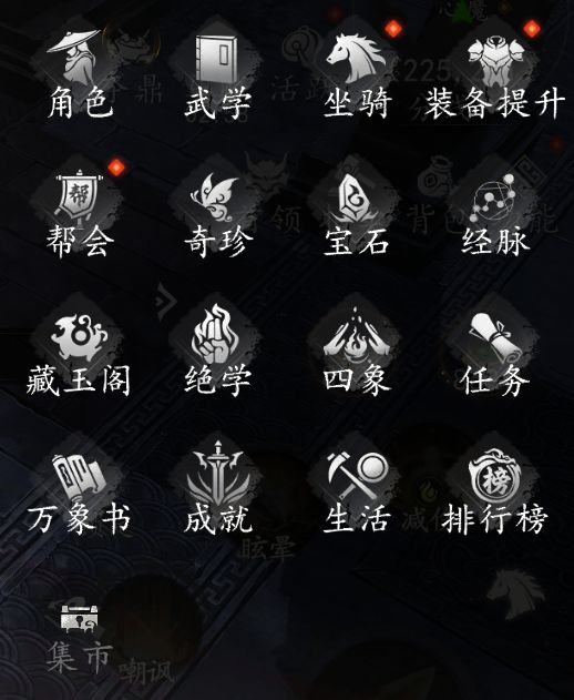 升级、强化、宝石、坐骑、异宝、神兵、四象、经脉、藏玉阁...