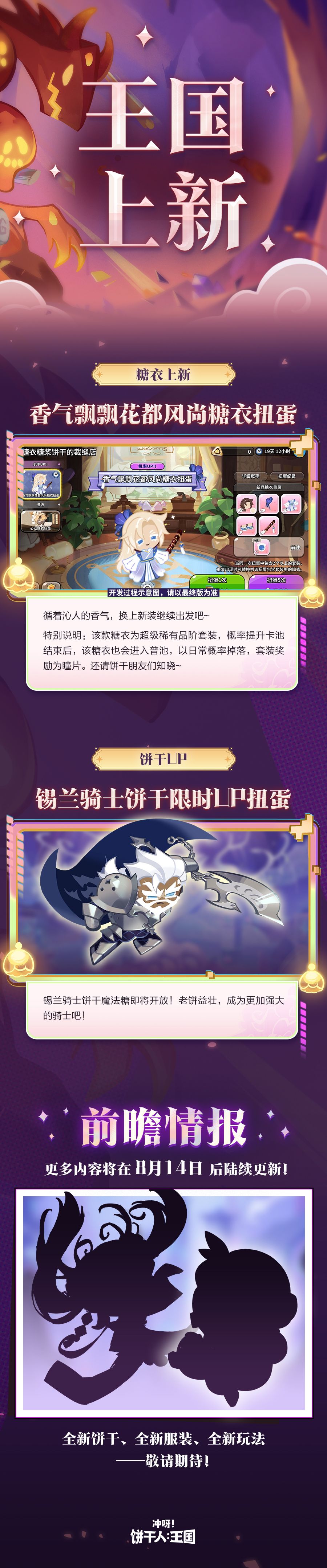 更有全新特殊区域剧情解锁、全新联动活动开启,百变竞技场再度打响,更多福利等你解锁——蓬松米糕大陆的又一角,期待饼干朋友的共同揭晓!