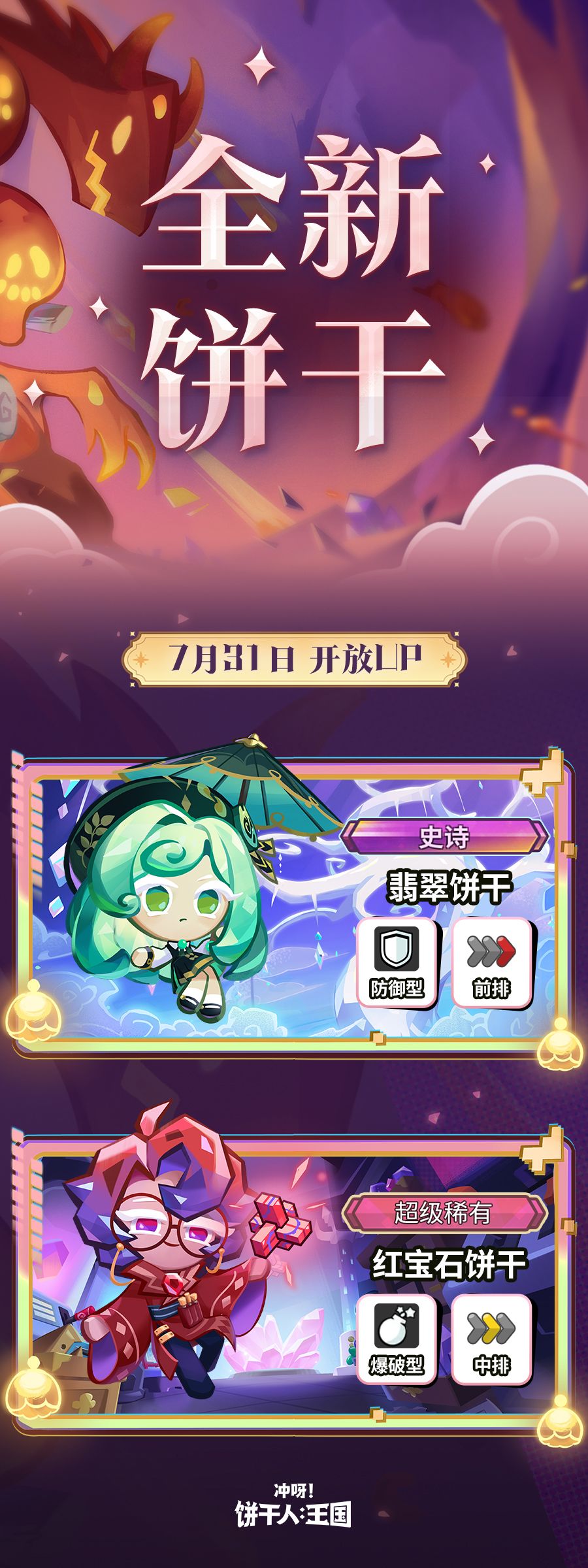 全新版本「遗世的宝石王国·下篇」将于7月31日开启!全新防御型「史诗」翡翠饼干、爆破型「超级稀有」红宝石饼干闪耀亮相!