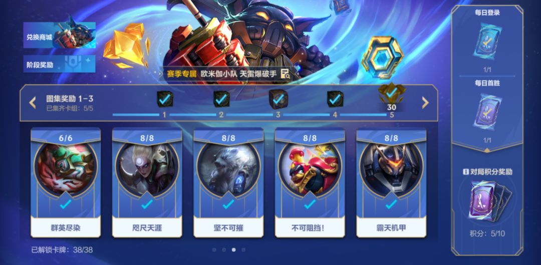 传奇图集S3赛季·阶段一火热进行中!召唤师完成卡组收集即可领取集萃晶石*3000、传奇宝钻*15、橙色原石*30等奖励~更有新赛季奖励皮肤:欧米伽小队 天雷爆破手 维迦可供兑换!