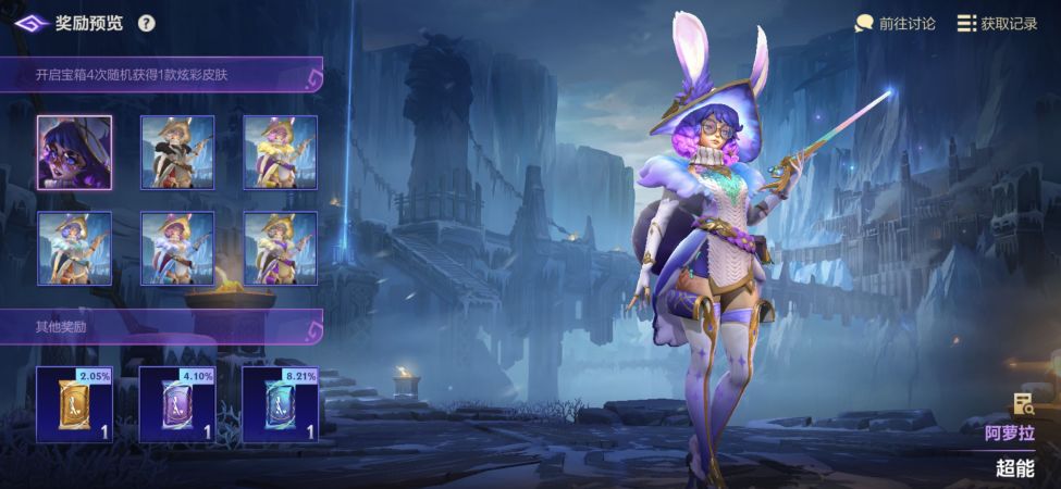 奖励:新英雄双界灵兔 阿萝拉,传奇图集紫色卡包,博识秘能*200等好礼
