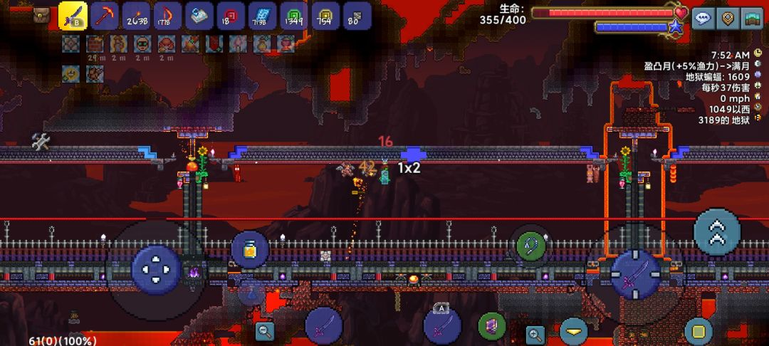 但是但是,泰拉瑞亚中地狱一共就这些内容,肉山后感觉就不会再来这里了,因为实在没什么内容,我在这待的也够久了,(后面会说时间)