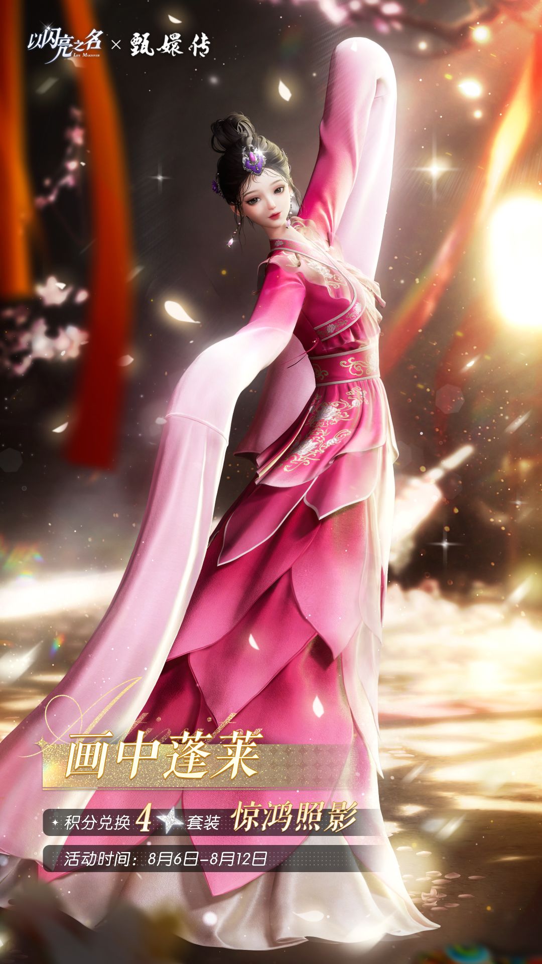 参与画中蓬莱,获取以闪亮之名x甄嬛传联动套装「惊鸿照影」!
