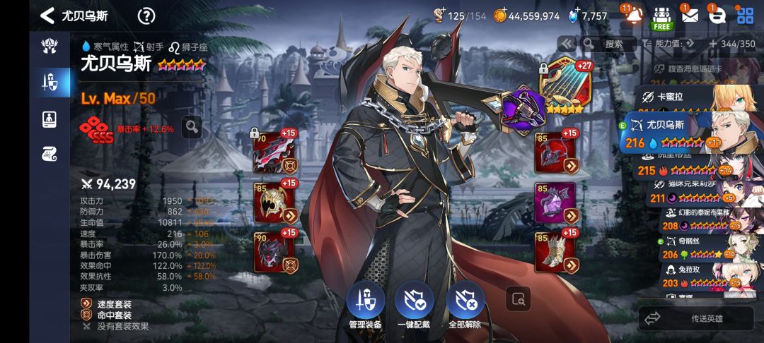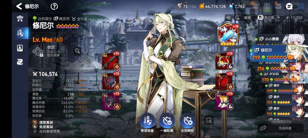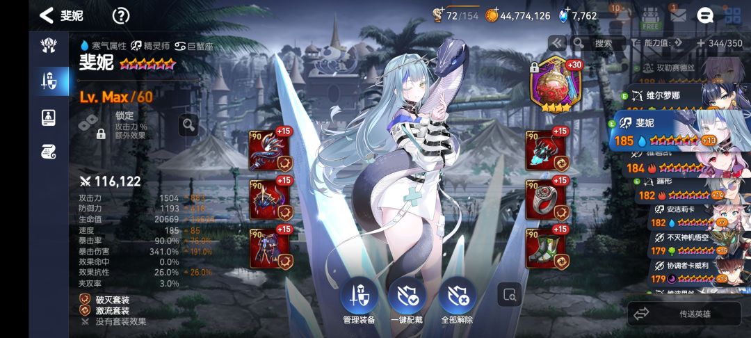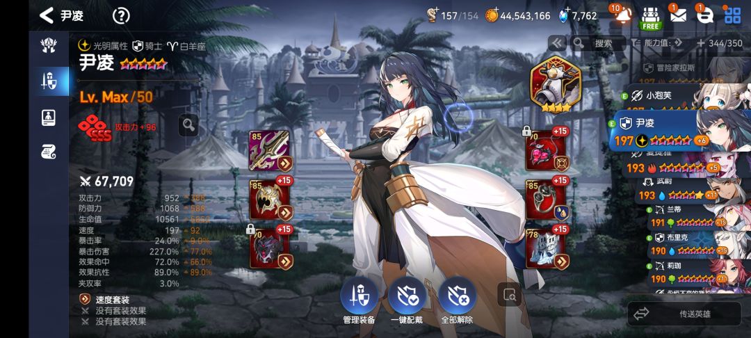 赛珂兰特,火讨伐同款,已经尽量压低面板了,暴击有开水哥补暴击,攻击和爆伤至少要比我这个高,神器带白日梦,专属带一,速度比薇薇安慢,最慢的那一个