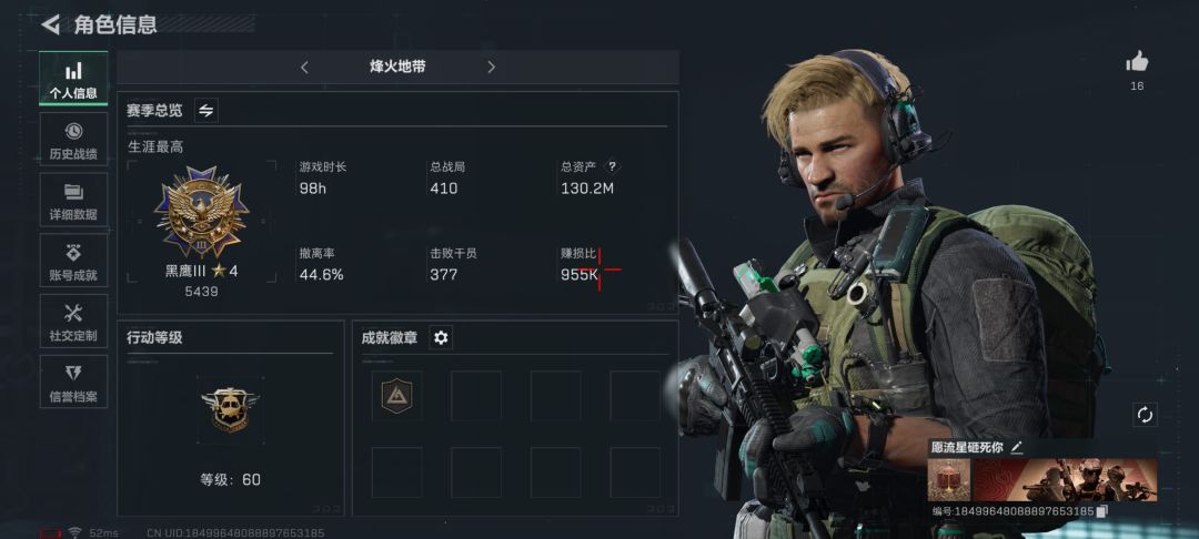 三角洲,我这个赛季的新号入坑也是出过非洲之心了,三角洲跟其他两款游戏比起来,感觉就是玩的爽另外,枪械也没那么都废物,毕竟人物总共就100血无论啥枪,秒人都还是挺快的。目前体验到。现在在做3×3结果卡到失去联系了,付了点代价让一个比较有战力的网友帮我做任务结果打了一下午了。而且成功让我的绝密kd从0.8直接涨到3.3。也打没了2,000万。大部分时候都是碰不到砖。有时候碰到砖了,结果队友不行。