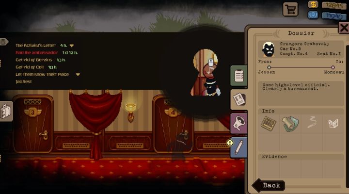 和系列前作一样,它的核心玩法就是监视为主,玩家需通过点击操作观察乘客行为,并决定是否上报或私下处理。乘客车票信息不准可以对其罚款,趁玩家离开车厢时可以趁机搜查是否有违规物品,随后提交包含乘客各种信息的品格证据,系统会依据搜集信息的数量给予玩家金钱和声望奖励,一些违规物品可以提交违规报告逮捕车顾客赚取更多的金钱和声望。而为这游戏玩法赋予灵魂的则是这些乘客每个人都带有各自的故事,有丧子的年老妇人、关系破裂的亲兄弟、赶赴上任的小官员、打牌出千的骗子、脾气暴躁的退伍兵等等,玩家的抉择会影响乘客和同事的命运,同时在荒诞的规则下,玩家的道德选择与游戏进程也深度绑定,玩家对规则越忠诚人性上也就越堕落。执行规则与同情个体的两难是玩家纠结的主要难点,因为这种设计没有绝对的对错,只有代价不同的选择,迫使玩家直面内心的道德标尺,同时也强化了反乌托邦主题的压迫感!