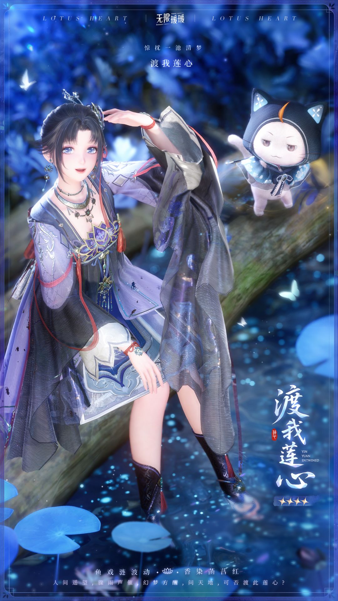 「渡我莲心」进化后为套装「渡我莲心·久念」。套装焕新完成后可获得「渡我莲心·归处」。