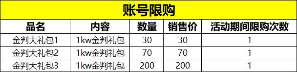 金判礼包内容:新增20亿金判礼包,最多单个账号可以获取30亿金判!