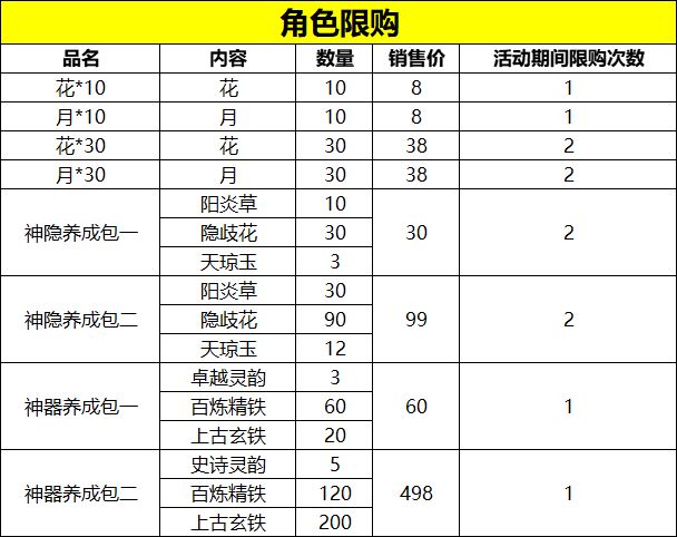 3. 活动道具均有限购次数,勾玉礼包和金判礼包按账号限购,其他道具礼包按角色限购,限购次数为活动期间内总次数,并非每日刷新,请注意购买次数。【若不确定已购买次数,可点击【历史订单查询】进行查看】