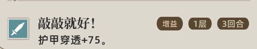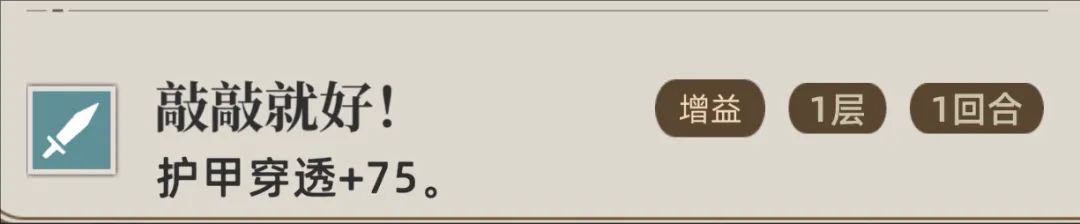 那么此技能在“过充”状态下是可以给自身施加“护甲穿透+75%”状态,那么当我们于40点能量使用1技能时,这个状态就是持续1回合的时间。