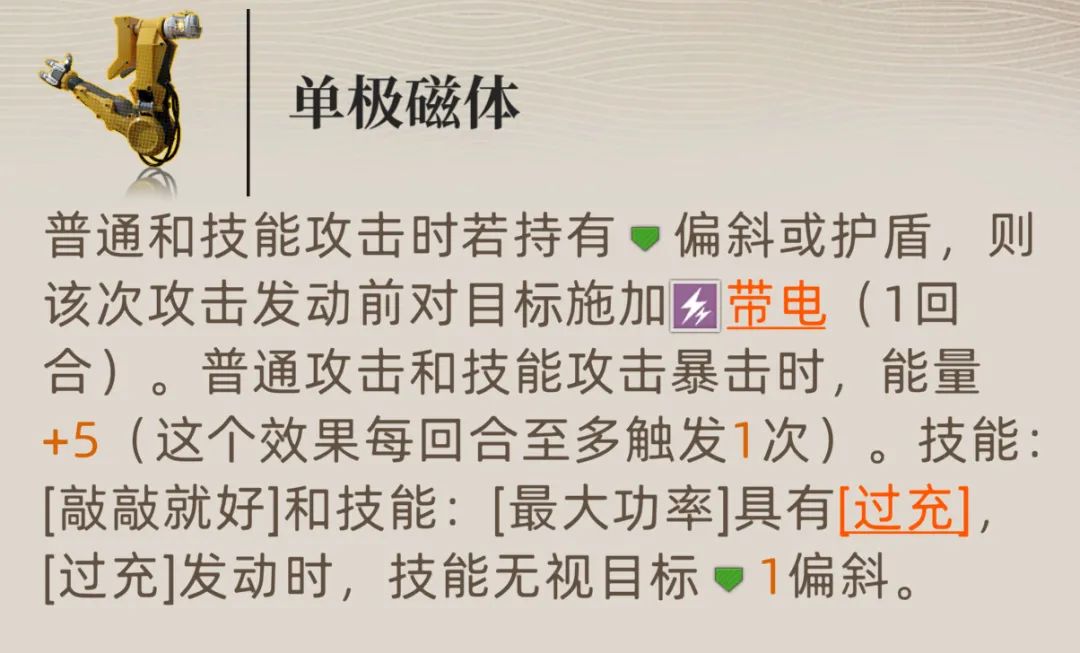 那么今天我们还是简单来说一说白星的特点和相关功能,具体的实测对比咱们留到吗明天再细说,首先白星的封装体天赋可以给对方施加“带电”效果,虽然有需自身携带“护盾”或者“偏斜”的前提,但如果是长时间战斗的话,白星还是可以当做“带电”工具人来看待的。接着她还有一个核心特点便是双技能都可以进行“过充”,且过充如果发动便能无视对方1点偏斜。