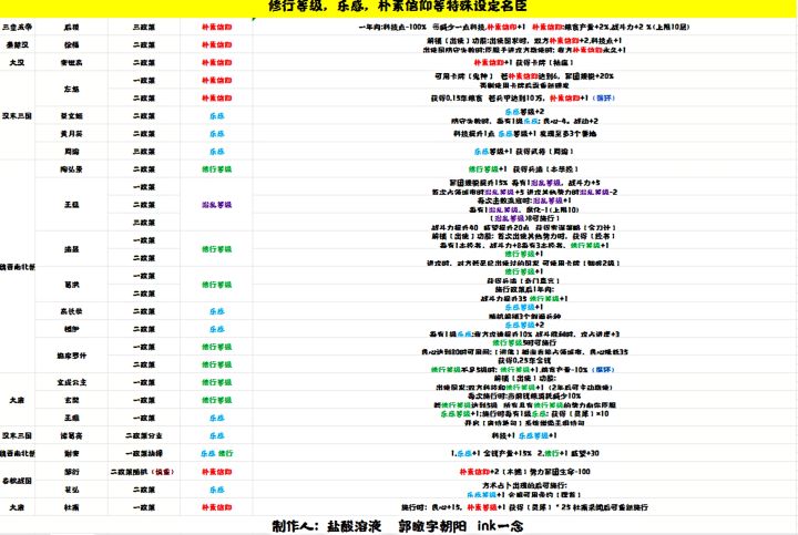 修行等级,乐感,朴素信仰等特殊设定名臣