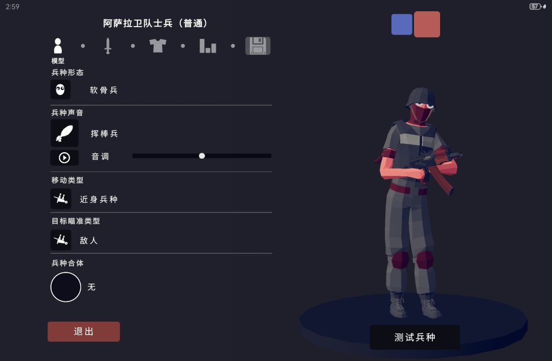 阿萨拉卫队士兵(共分为四种,分别对应游戏中四种防具的人机,由于部分武器TABS中没有,所以我选了比较接近的武器)