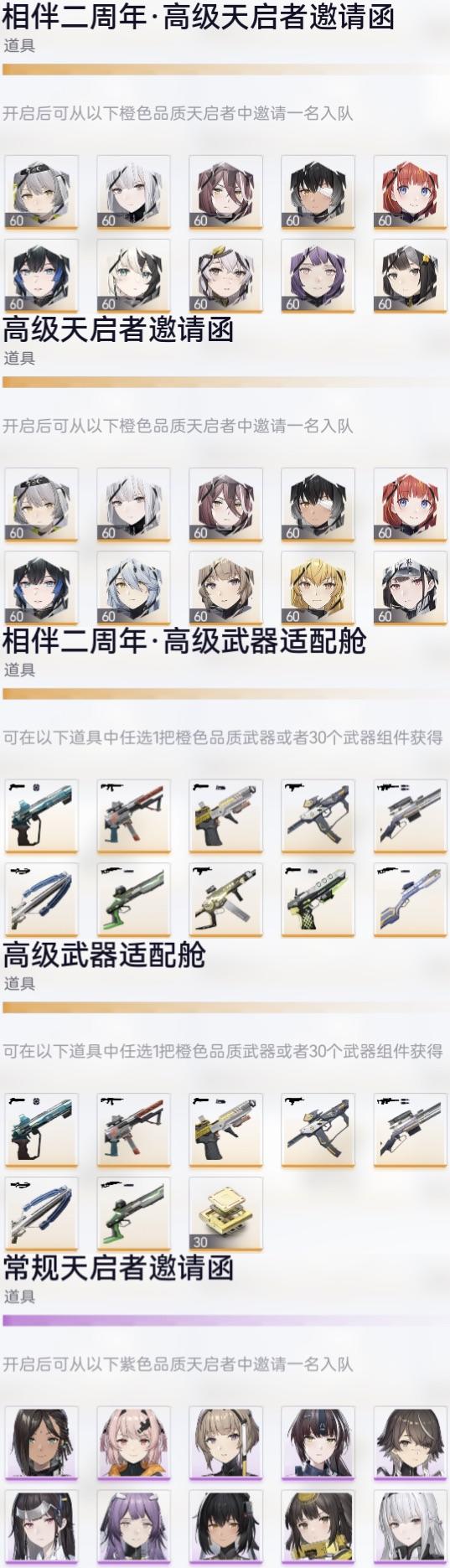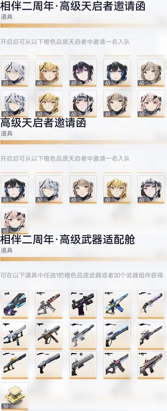 (重发帖)一周年和二周年高级天启者邀请函和高级武器适配仓怎么选