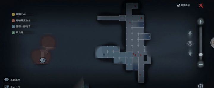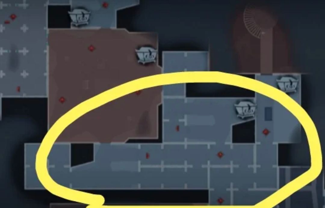 见图三,这里指从正门或者侧门一进来就能看到的区域,是一片密集的白色格子,浅蓝色的格子代表水下有相同的路,如果说没有带传送可以通过白格区反向去找正门和侧门来撤离。