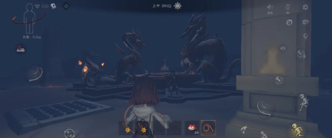见图四,一般来说从侧门进入后很快就会遇到一个空旷的大厅,大厅一般都会有龙和凤的雕像,所以我叫他龙凤厅,这片区域基本上会刷1~3个棺材,小黄也可以在这个区域附近用技能