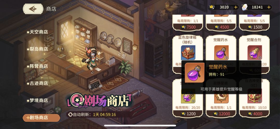 2.裂岛商店:只换觉醒药水,十星开始觉醒需要的特别多,钻石买的话很贵。