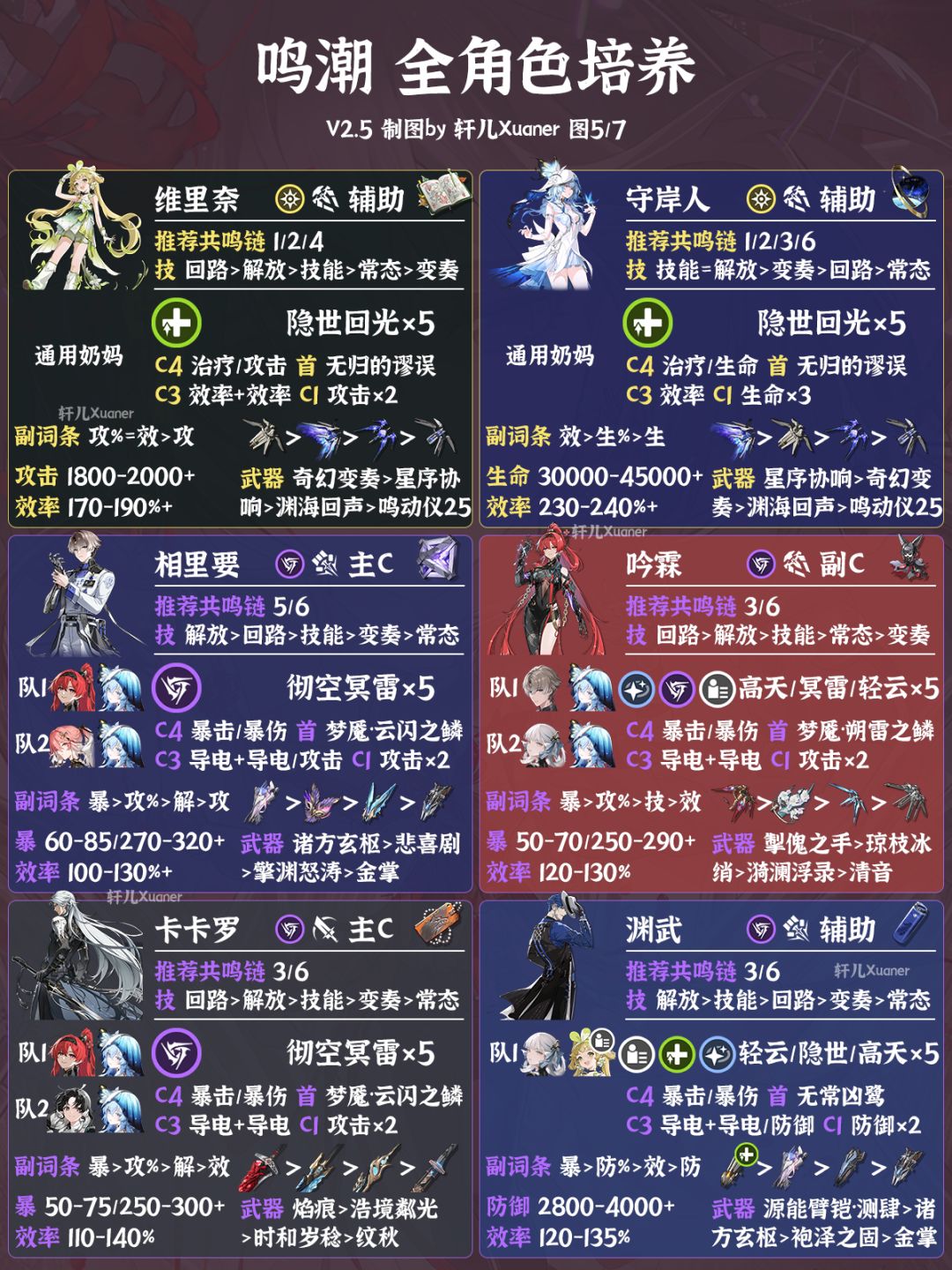 鸣潮V2.5全角色养成一图流