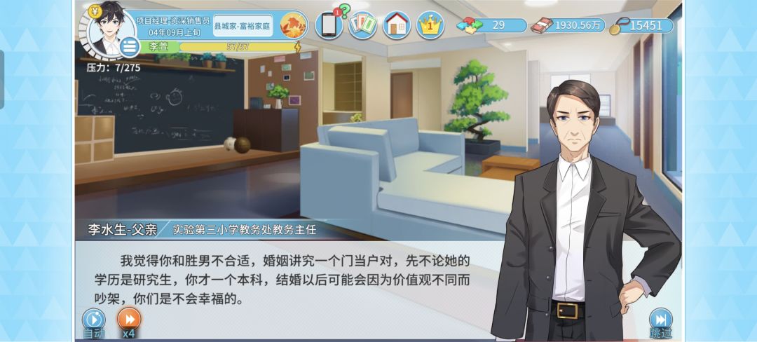 9月上旬现金≥100万/胜男好感>100——待胜男回家见父母,第四年起码要凑够200万嗷,5月有100万要用来买股份。