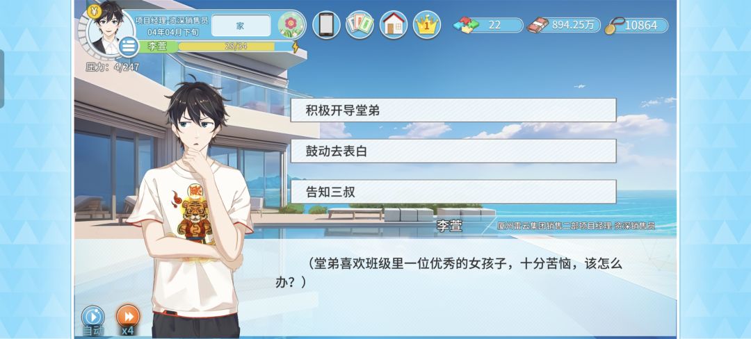 - 开导堂弟:“先变优秀再恋爱” → 交流沟通经验+300!(技能提升福利)
