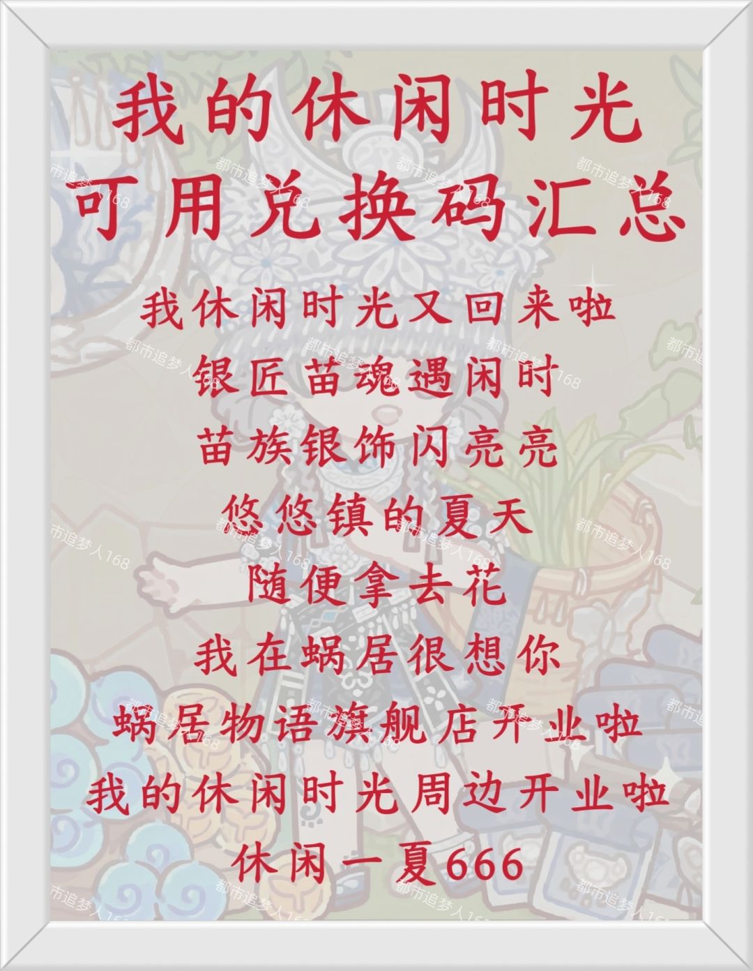 我的休闲时光可用兑换码汇总。