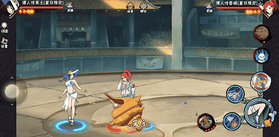 轻形态夏日黑土+重海螺=轻重追加技,攻击距离覆盖全x轴,夏日黑土乘坐重海螺冲撞,滑行期间可以拉摇杆转向,乘坐海螺时可以格挡3段飞行物。黄条结束时,或提前点击普攻可以结束滑行,夏日黑土会跳下海螺并将敌人与重海螺一起踢飞。