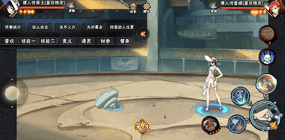 重形态二技能调整落地方向在轻形态下释放二技能,夏日黑土突进扬起海浪,x轴距离约半个决斗场,可扫地,可用于起手。