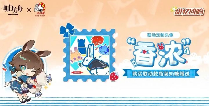 大白兔奶糖联动,有阿米娅。W。哀珐尼尔。有联动头像。买奶糖可以获得头像兑换码。上海那边有联动主题店。