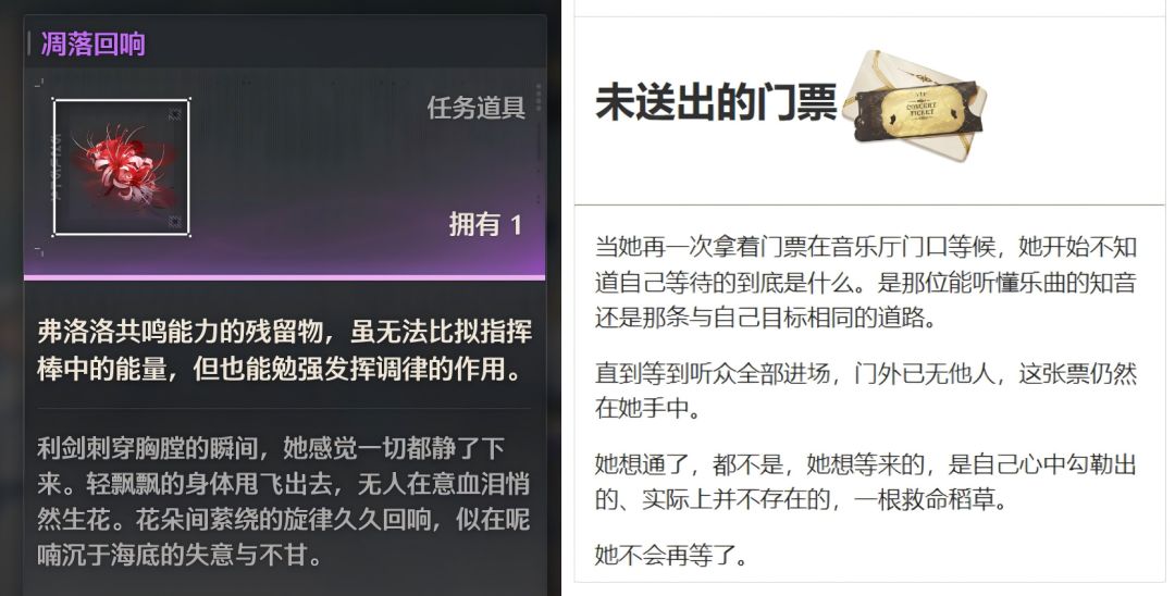 但让更多玩家遗憾的,是弗洛洛的过往本就是一场与主角错位的悲剧:弗洛洛作为天灾中的唯一幸存者,觉醒了死亡带来的共鸣能力,之后为复活亲友屡败屡试,直至遇见能听懂她乐曲中悲伤的主角,并将其视作知音。之后双方约定 「完善乐曲后重逢」 ——结果,等来的却是漫长守望后的失约。