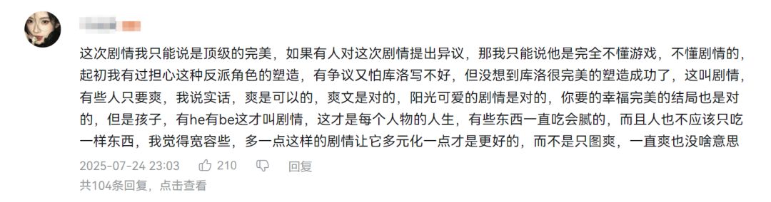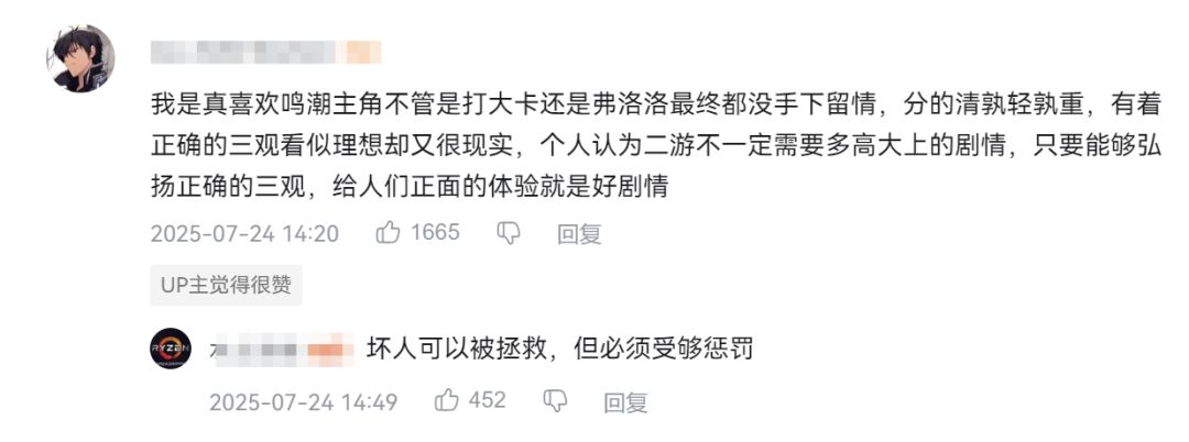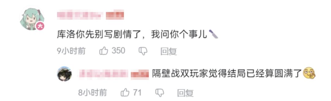 你可以发现,库洛在用悲剧展现冰冷的人性对抗,让角色脱离套路化塑造,成为有独立价值观的更真实存在,以此打动玩家——从相关评论区的反馈来看,许多玩家也理解到了这一点。