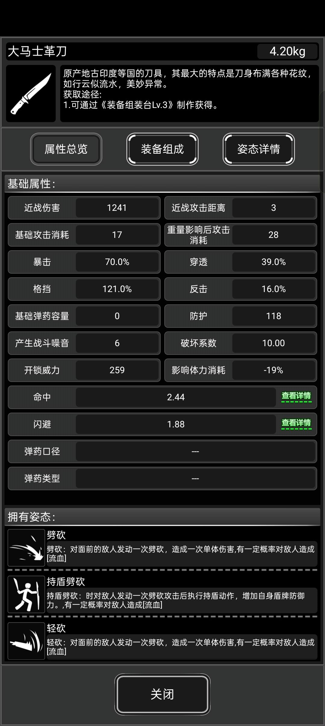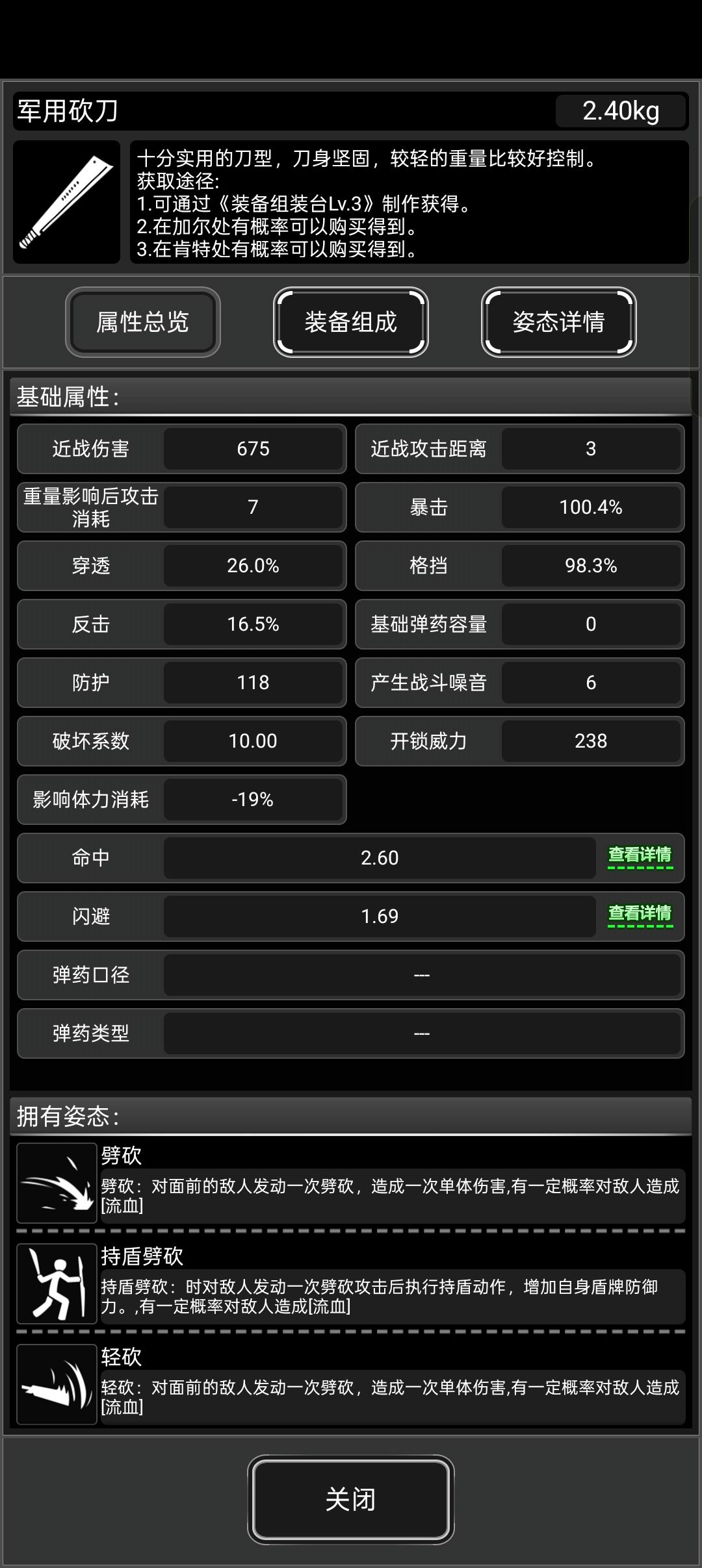 从图片上可以看出,马刀的伤害虽然高许多,但是暴击率还是不及军用砍刀,所以在面对一些没有格挡的怪物,比如小天使,恐惧支配者等。军用砍刀的性能比较于马刀来说也不算弱。
