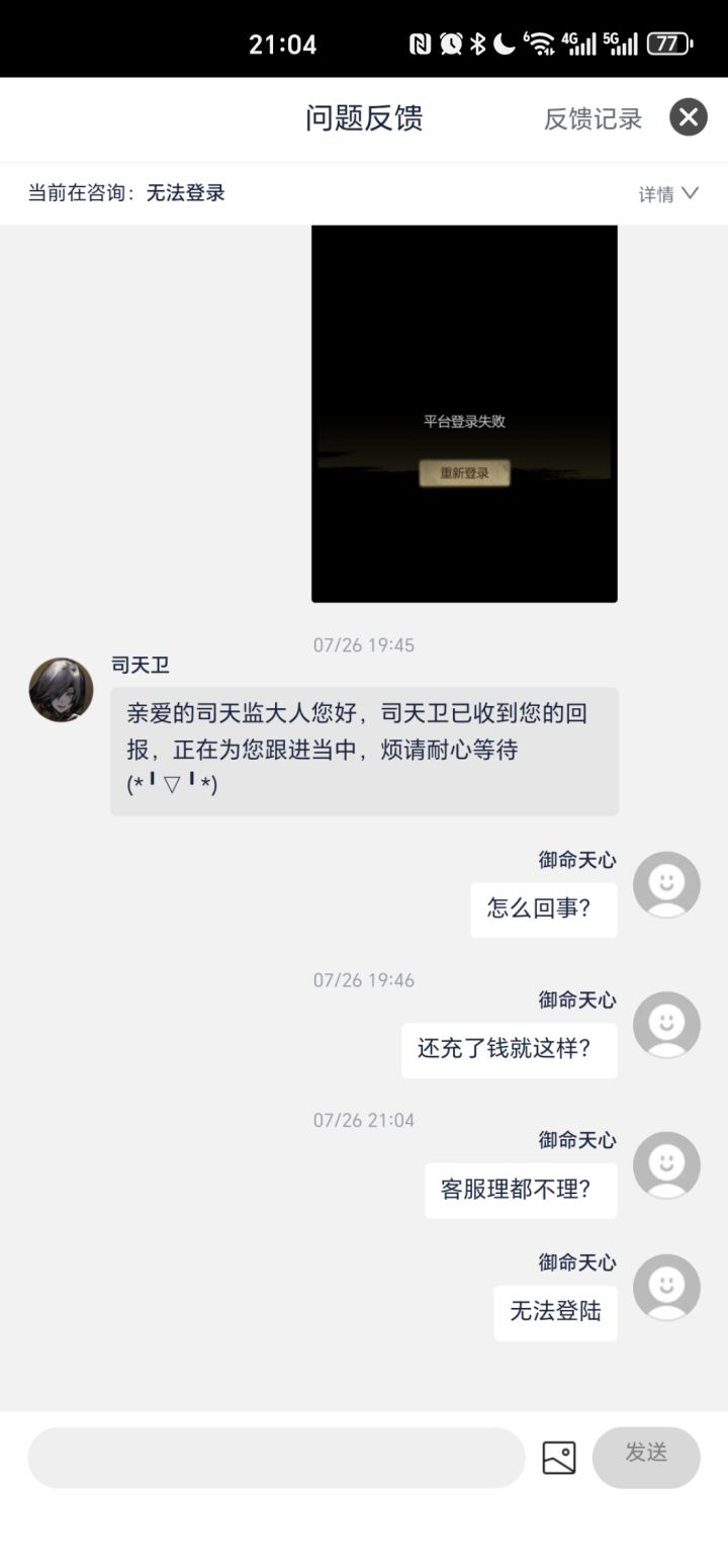 退游了,这算是我最后一次玩抽卡游戏了,纯纯恶心老子,压根没闪红,还封号超过24小时,亏我支持国风武侠还充了一千。我对你这个抽卡机制感到恶心。以为只是bug吗?是bug暴露的闪红机制。而且弥补了个啥?把愿意氪金早起的优质玩家给卡成这样,竞技场还有5星闪红卡你怎么不去补?还踏,马不如回到公测前提升闪红倍率呢。