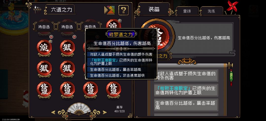 修罗优先200攻速,150暴击。如果修不够的小伙伴可以只点100移速,和100血量,攻击可以不用点。进图之后魂力方面我们选择持续时间,持续时间,持续时间!(真男人就要持久)