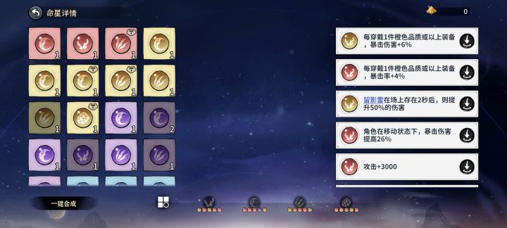 青龙必带(装备橙色品质加暴击和爆伤的两个命星➕留影雷➕攻击力➕移动下增加爆伤或者不移动增加爆伤自己选择)