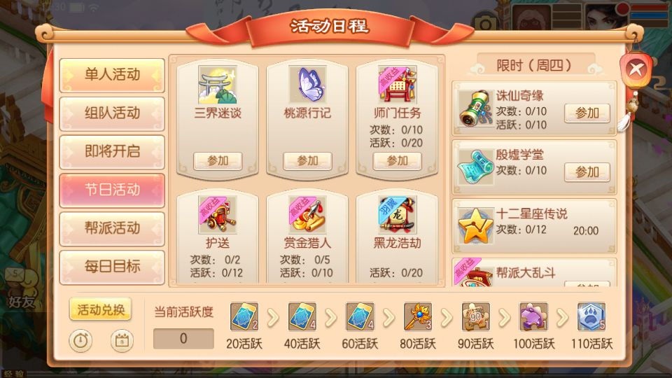 6月26日-8月15日,等级≥30级的少侠可以参与二郎真君主题兑换活动,用日常主题活动中获得的兑换道具,进行奖励兑换!