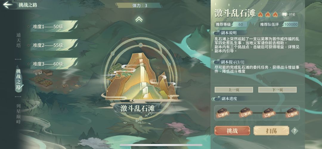 3.凌雪-峡谷,最好再配个挡刀肉唐婉,开局先吃药清小兵,最后自动打精英,没血注意手动吃药
