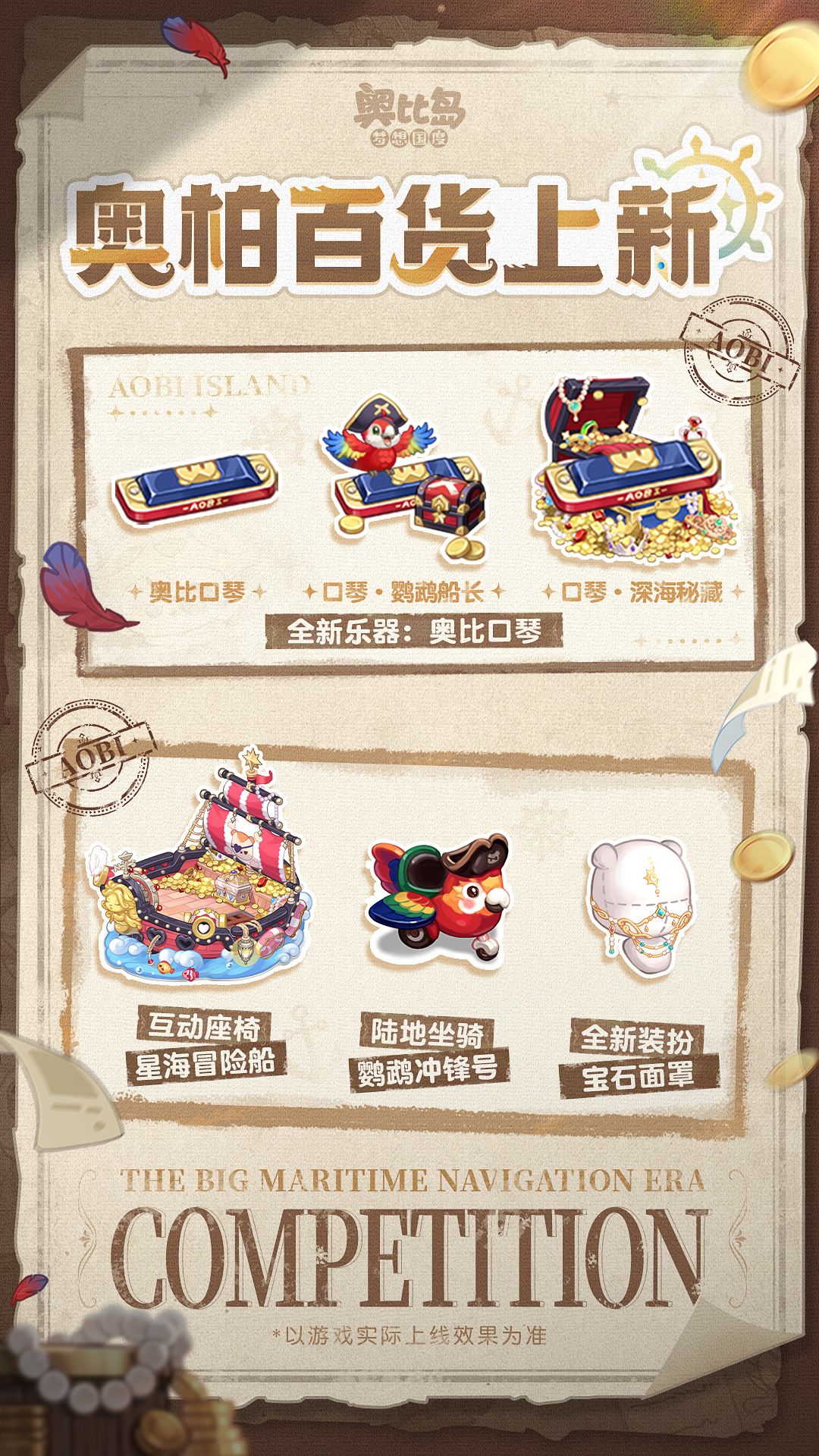 🧭奥比岛第111届「星际大赛」航海季限时活动将于7月31日正式开启!航海主题装扮&家具上新,奥比生活新系列登场,还有限时宠物「熊克船长」、星际大赛全新项目等精彩内容即将和大家见面!