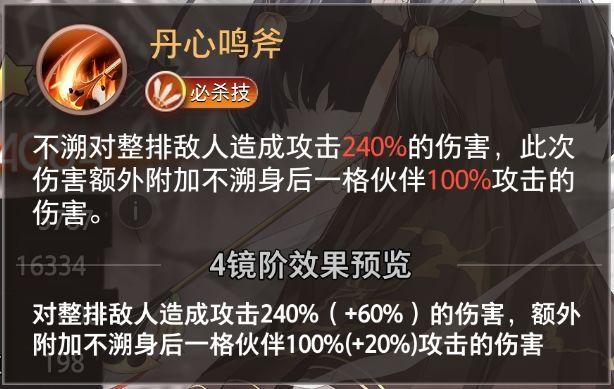 必杀技·丹心鸣斧:全排伤害附加召唤物攻击,但魔盒占用格子且全屏伤害低,对BOSS威胁有限。