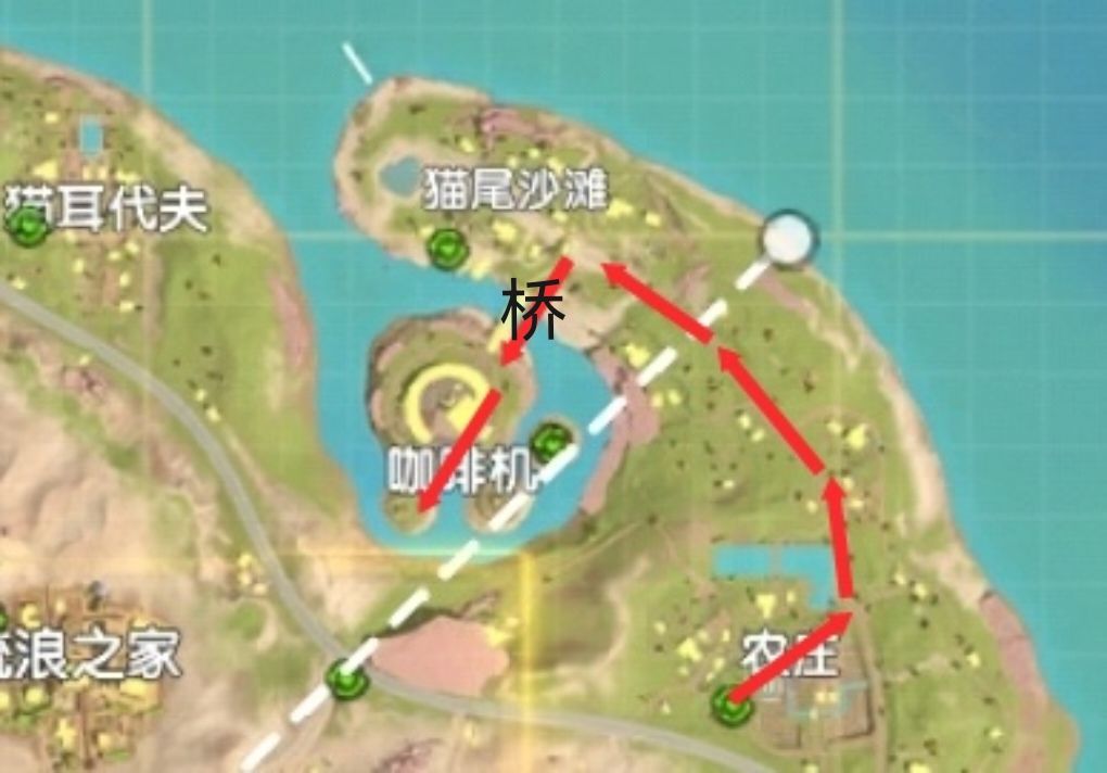 若跳在“农庄”等一片绿洲区域,可以按以下红色箭头➡路线走