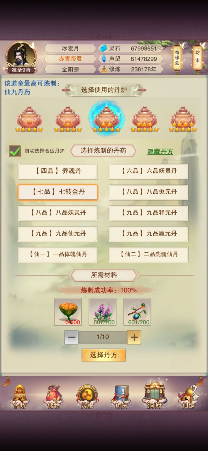 半年多用先天终于换到了七转金丹卷七,发现没太极炉好用不说,这单方材料都是不好搞得,鬼佬能不能换个简单的材料