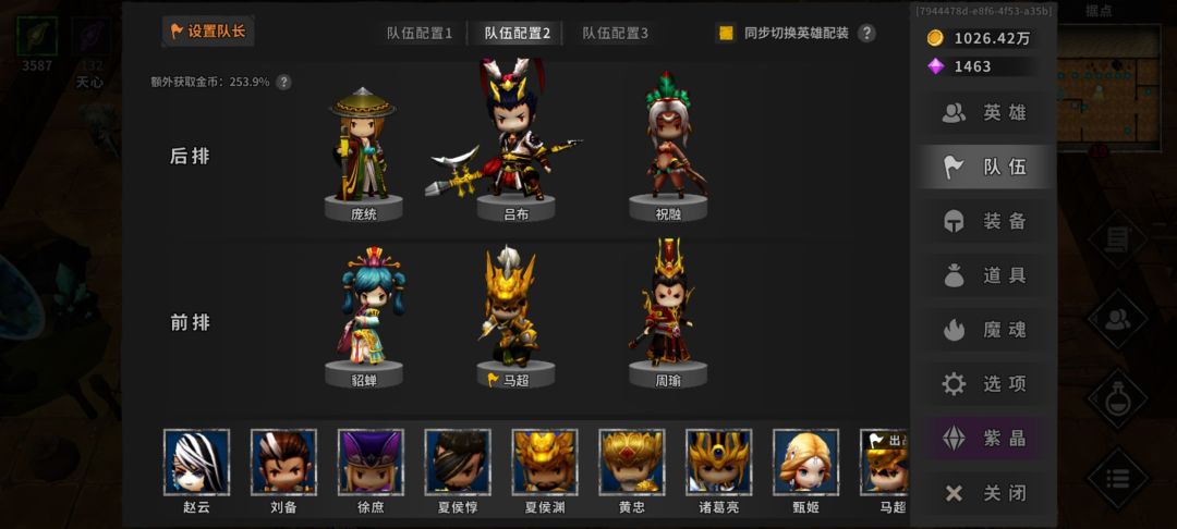 我的阵容和大家不太一样,我是去掉了黄忠,用的吕布和庞统双c,周瑜主手暴击+行动,副手暴力+怒气,90暴击率叠被动。