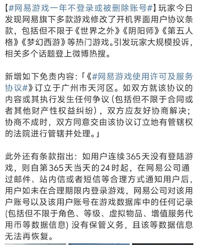7月25日,#网易游戏遭大量玩家维权 登上热搜 ,其多款游戏的使用许可及服务协议引发网友争议。