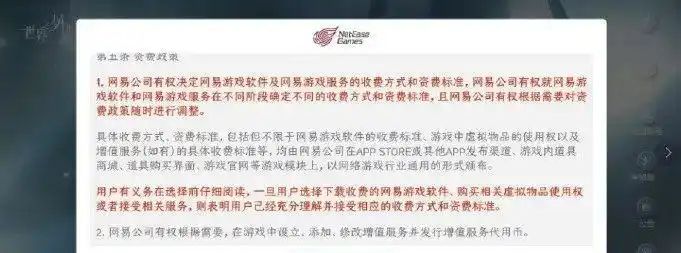 其中有条款指出:如用户连续365天没有登陆游戏,则自第365天当天的24时起,在网易公司通过邮件、站内信或者短信等合理方式通知用户后,用户如未在合理期限内登录游戏,网易公司对该用户账号以及该用户账号在游戏数据库中的任何记录 (包括但不限于角色、等级、虚拟物品、增值服务代用币等数据信息) 没有保管义务,且该等数据信息无法再恢复。