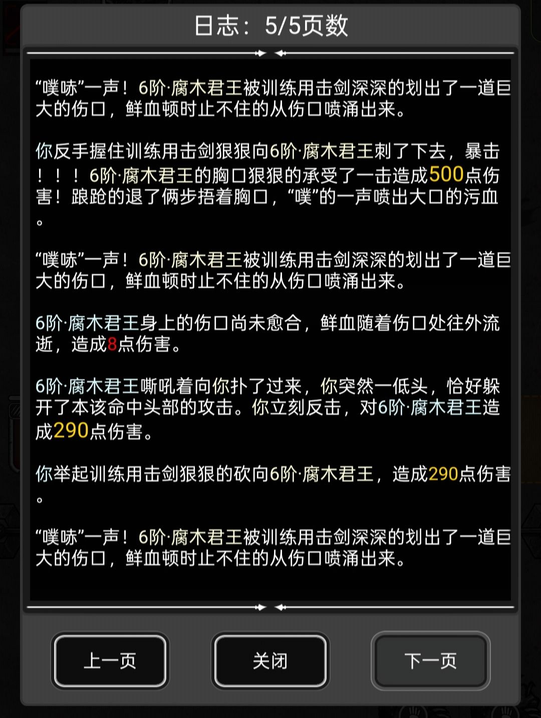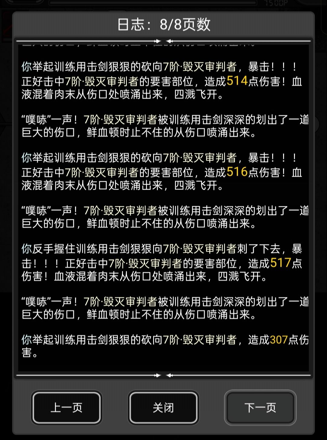 暴击伤害500,常规伤害290左右,格挡伤害甚至到了200不到。频率达到了惊人的一次五刀。