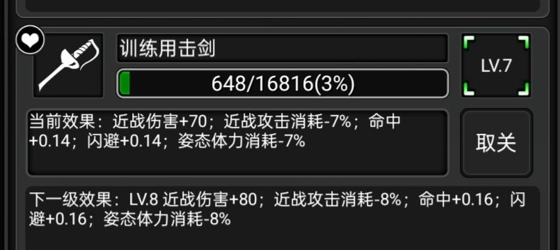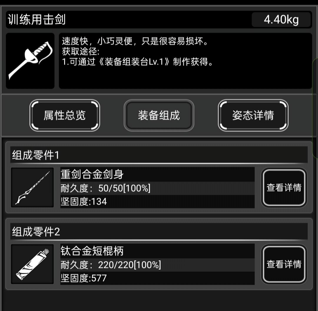 它就是训练用击剑,很多时候新手玩家摸出来,这把剑都会因为它两格的短小攻击距离而将它放弃掉,老玩家更是有许多常规武器将它代替。