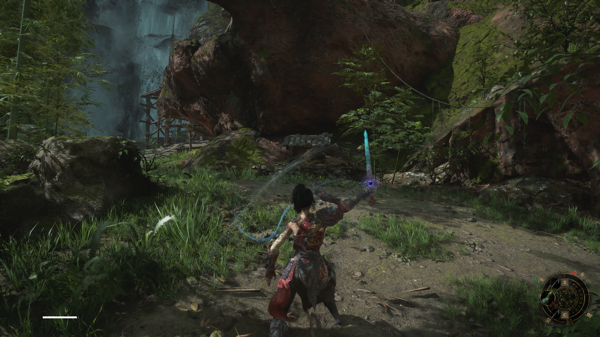 以往的魂游中,大家总会吐槽篝火(休息点/传送点)的泛滥导致的探索成就感不足。《明末》控制了探索节奏——将“篝火”(游戏中称为杜宇神龛)数量压缩到极致,依靠密集的捷径和回环结构维持探索的紧张感与成就感之间的平衡,或许有些玩家在战斗中死亡会觉得再次大段的跑路过于麻烦,但这种更硬核的设计探索也未尝不可。针对不同区域类型,箱庭重点也各有特色,游戏还贴心地加入了许多便利设计:官方提示隐藏道路和危险陷阱、标注可对话的NPC,甚至在右下角加入了指示罗盘,避免玩家错过关键路径。