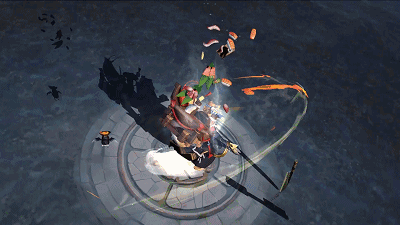 长按技能,使犬神进入持续冲锋状态,提升移速并免疫控制效果,期间可随时停止冲锋并向面前进行1次斩击,对范围内敌人造成60(+80%额外攻击) 点物理伤害和击飞效果,同时降低目标50%移速,持续1.5秒,减速效果在持续时间内会逐渐衰减。