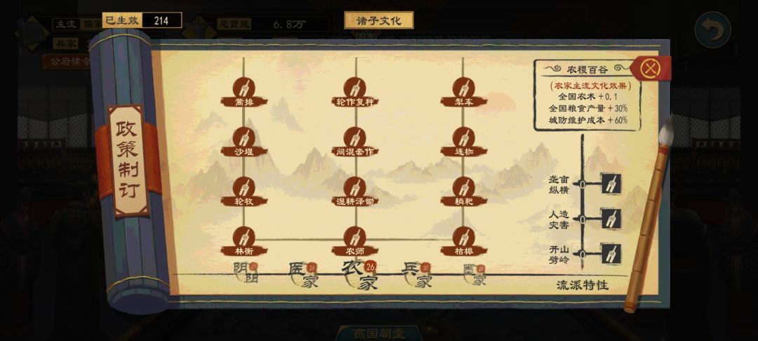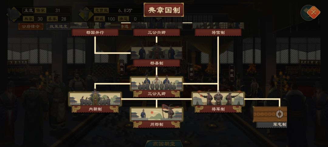 任何主流文化要点完所有政策也很简单,那就是一直不停的招人,只要是有你需要的政策能力的都留下,让他上朝堂,你就可以点政策了,我就是这么点过来的。