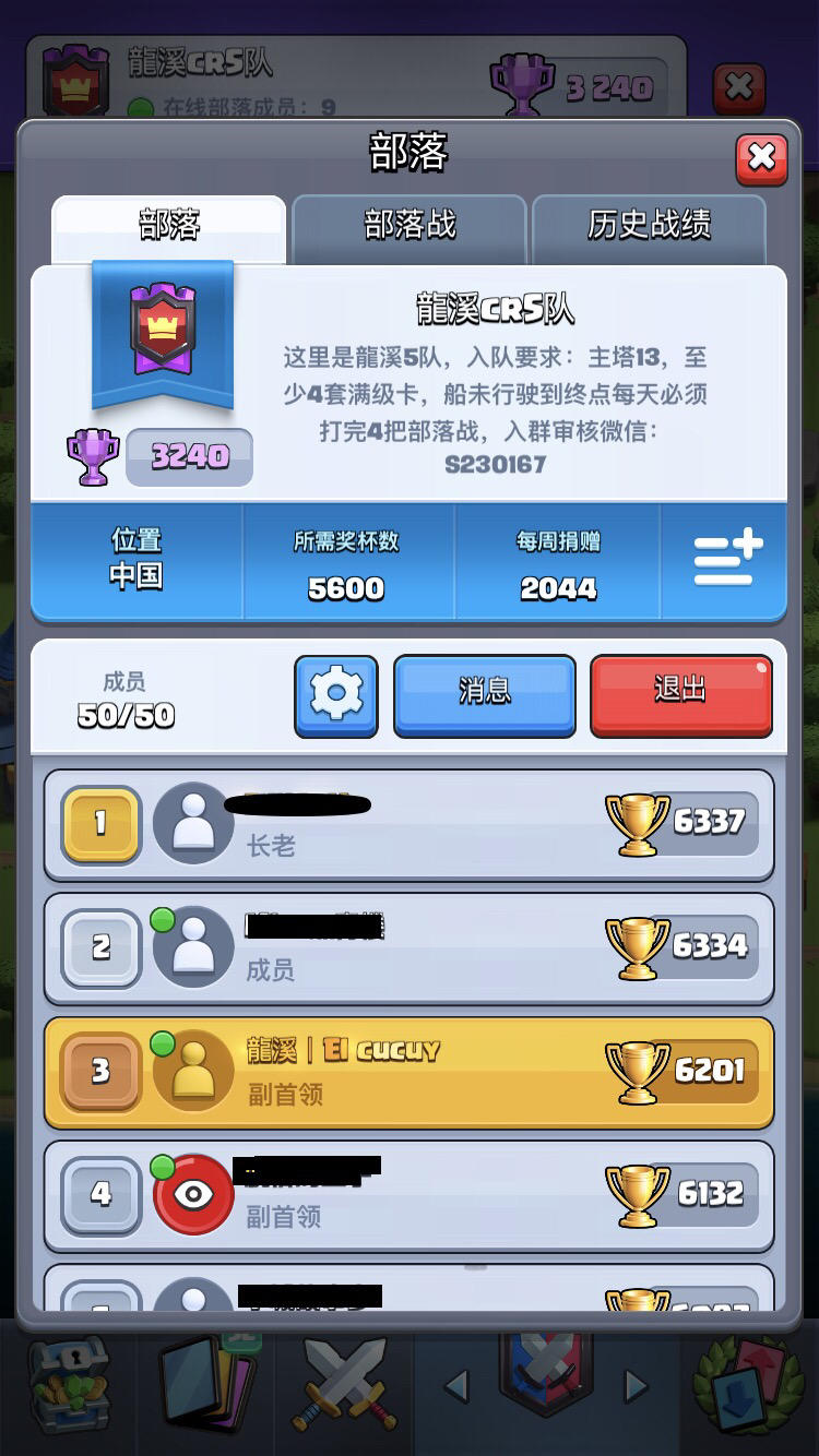 由于现在部落战全胜,但是卡等跟其他全是大佬的部落没法相比,所以想招一些国内大佬,有兴趣的可以在底下留言,希望大家加入我们龍溪大家庭